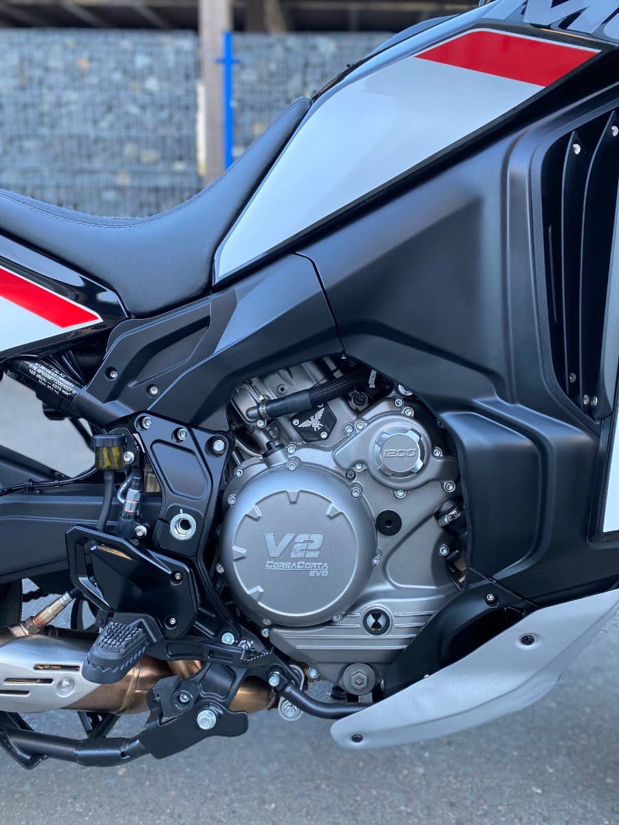 Ikonický motor Corsa Corta (v překladu krátký zdvih) přichází znovu v modelu X-CAPE 1200 pro milovníky dobrodružství, kteří požadují jak výkon, pohodlí i sportovnost. Nabízí vynikající odezvu díky svému dvouválcovému V2 motoru o objemu 1.187 cm3, vidlicový dvouválec s úhlem rozevření 87°dodává 129 koní a 106 Nm při 7000 otáčkách.