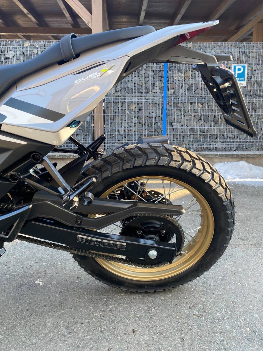 DUEL X je vybaven osvědčeným motorem o objemu 125 ccm z nahého modelu DUEL a vyniká robustním rámem a specializovanými technickými prvky, díky nimž je připraven zdolat jakýkoli terén. Objevte nový způsob, jak zažít dobrodružství: s DUEL X objevování nezná mezí.